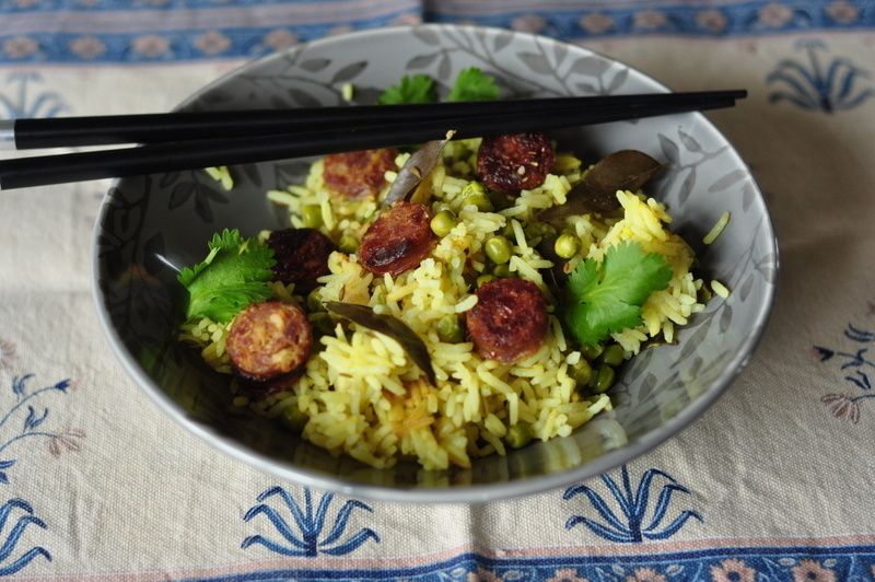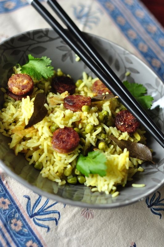 Servez immédiatement en déposant les saucisses sur les portions de riz.